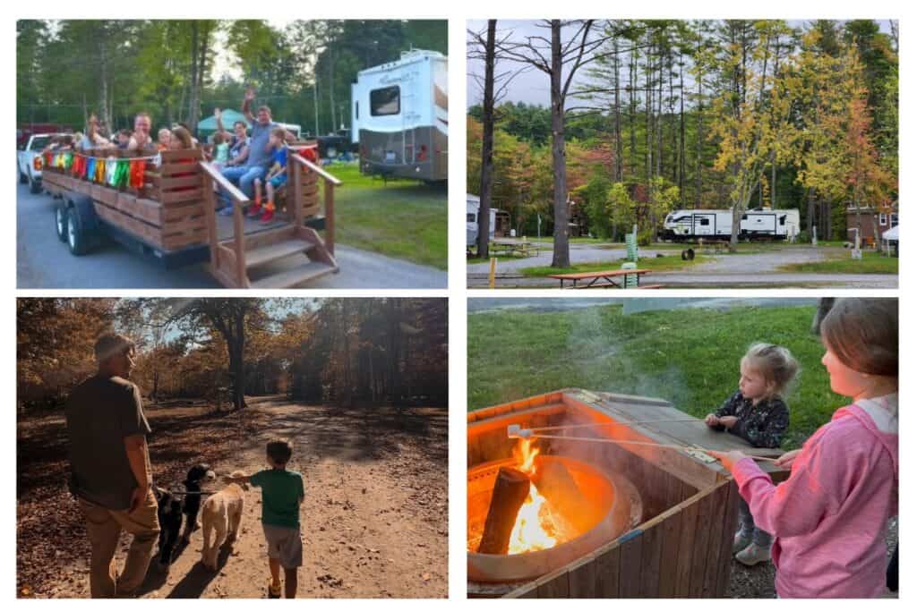 collage of amenities and activities at Lake George Escape Campground